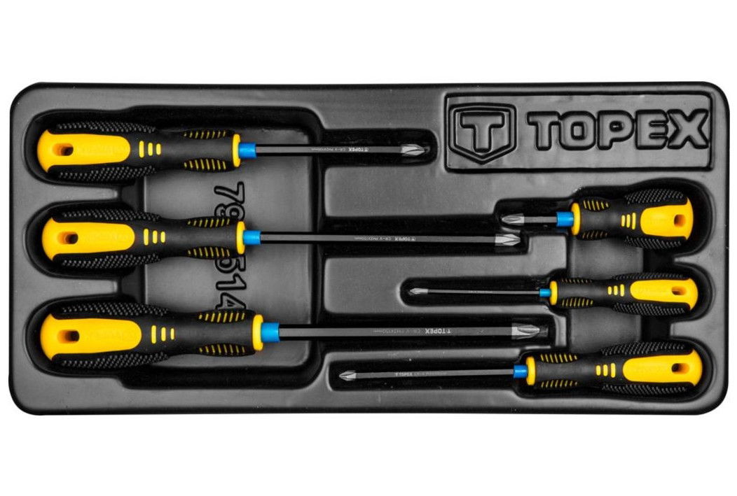 Topex 79R514 kereszt csavarhúzó készlet, CrV acél, 6 részes